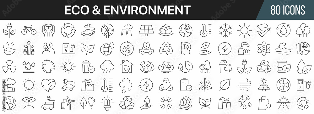 The watermark will not be included on Wall mural.: Ecology and environment line icons collection - big ui icon set in a flat design - thin outline icons