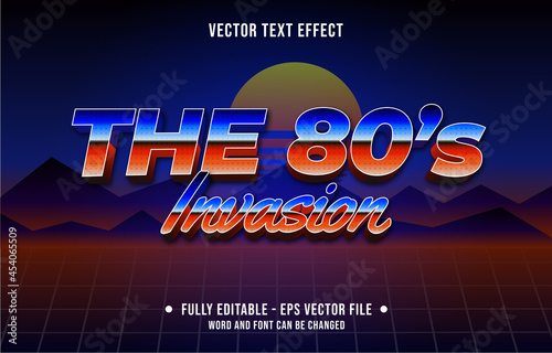 Wall mural editable text effect gradient color retro futuristic eighties style for digital and print media font