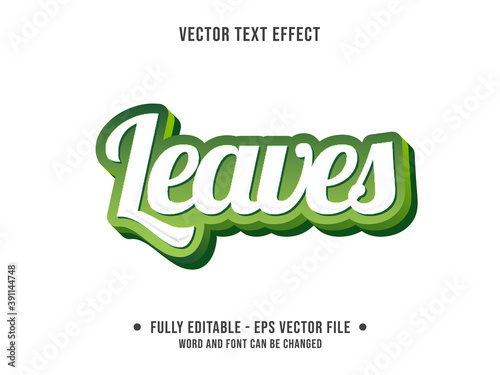 Wall mural : Editable text effect - leaves green and white color gradient style