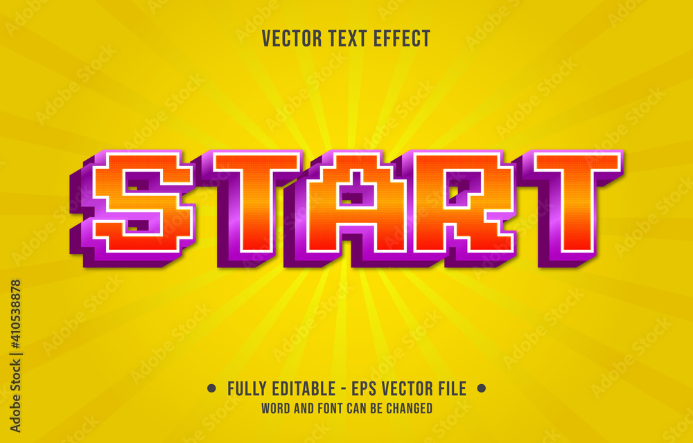 The watermark will not be included on Wall mural.: Editable text effect - start orange gradient color 8bit retro game style