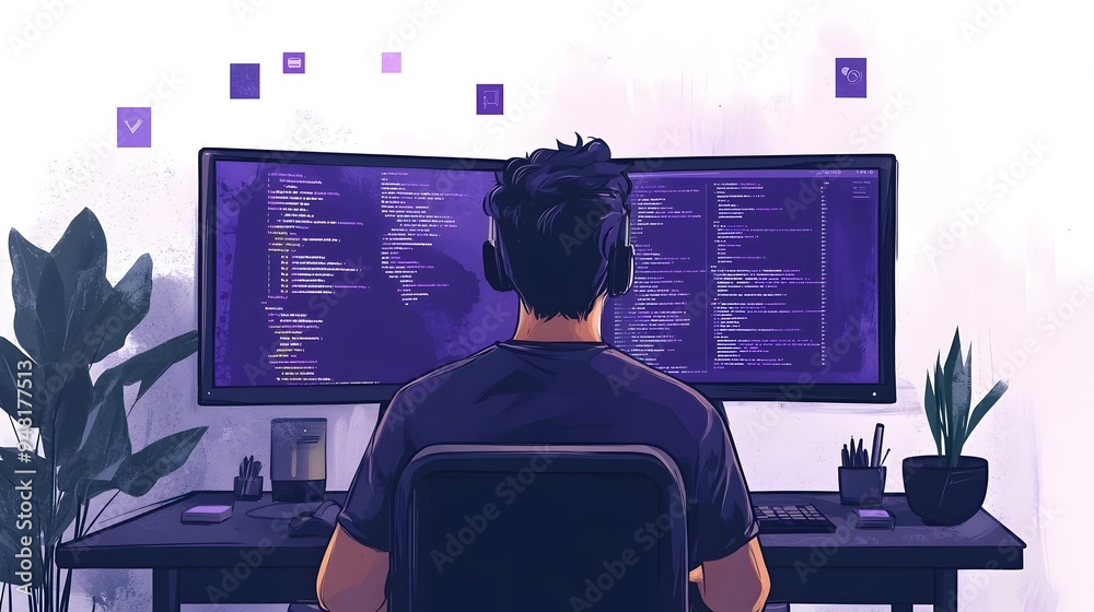 Wall mural efficient web development process with integrated api on dual monitors - Wall murals Wall mural efficient web development process with integrated api on dual monitors - Wall murals