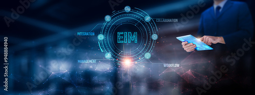 Wall mural eim: businessman using tablet analyzing eim record on tablet. digital documents and network connecti