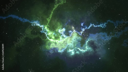 The watermark will not be included on Wall mural.: Electric green and blue abstract fractal universe space looping background