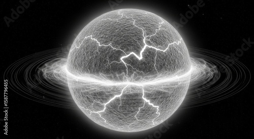 Wall mural : Electric planet energy burst - a grayscale image of a planet with electric energy bursting from its