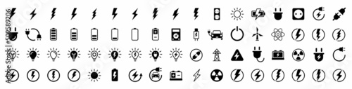 Wall mural : Electricity icons set - set of green energy thin line icons - power related icon set - icons for renewa
