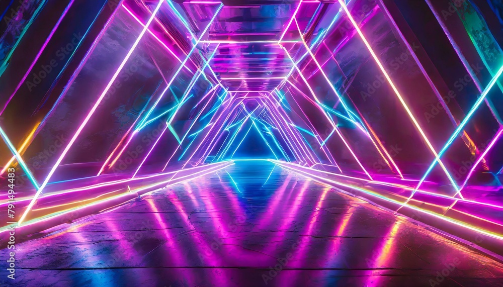 Wall mural : Electrifying geometry: abstract neon light background illuminated with vibrant lines texture backgro