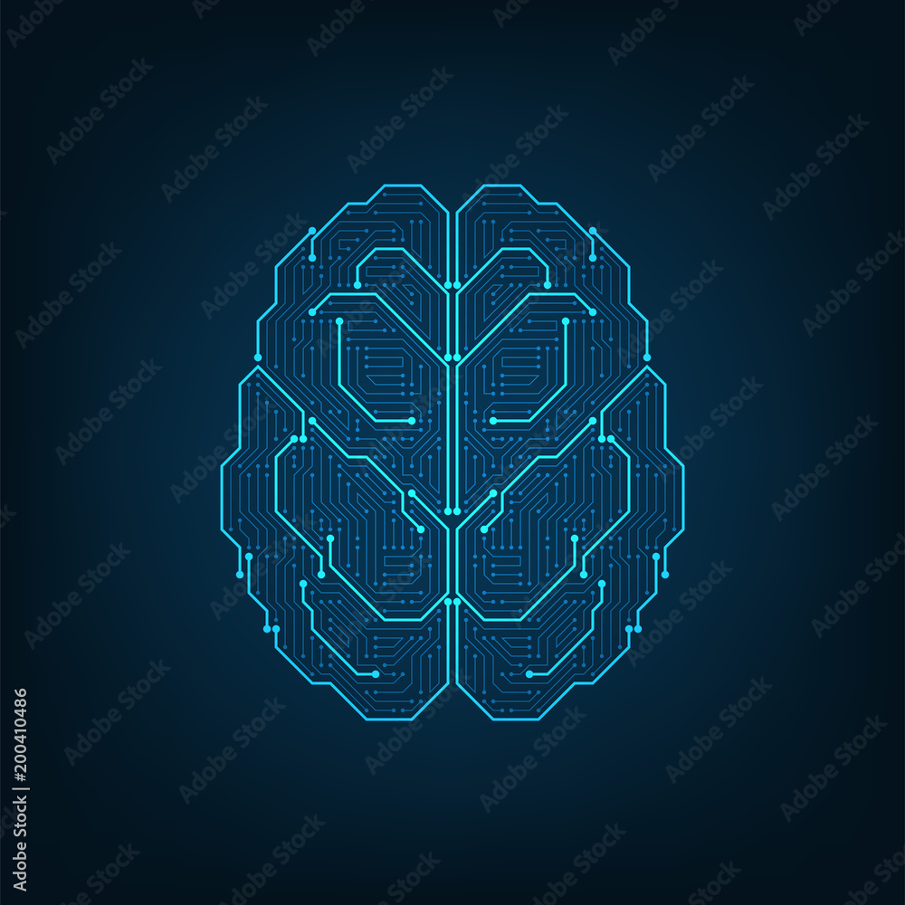 Wall mural electronic circuits in the brain pattern viewed from above.