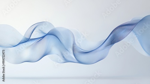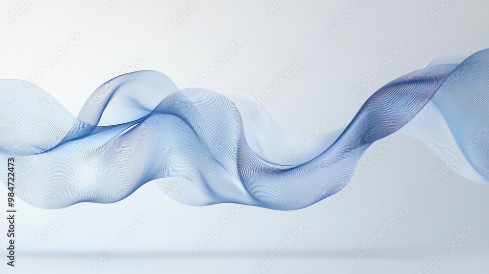 Wall mural : Elegant abstract image of a flowing horizontal ribbon wave with soft gradient hues of blue on a whit