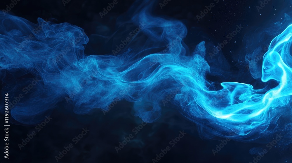 The watermark will not be included on Wall mural.: Elegant blue gas flame against a dark backdrop creating a mystical and calming atmosphere suitable f