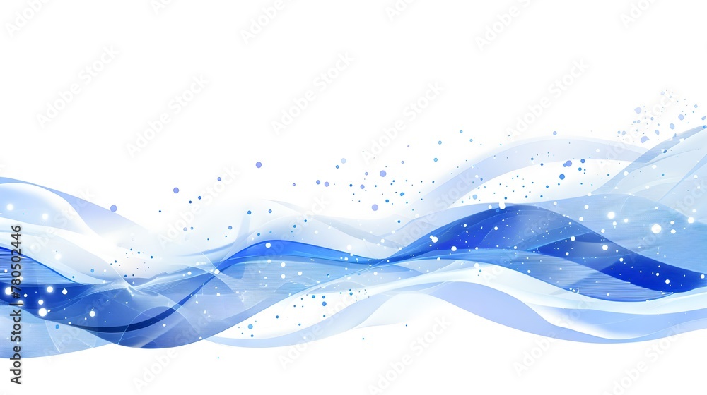 Wall mural : Elegant blue wavy lines with sparkling dots on white background - perfect for presenting modern and f