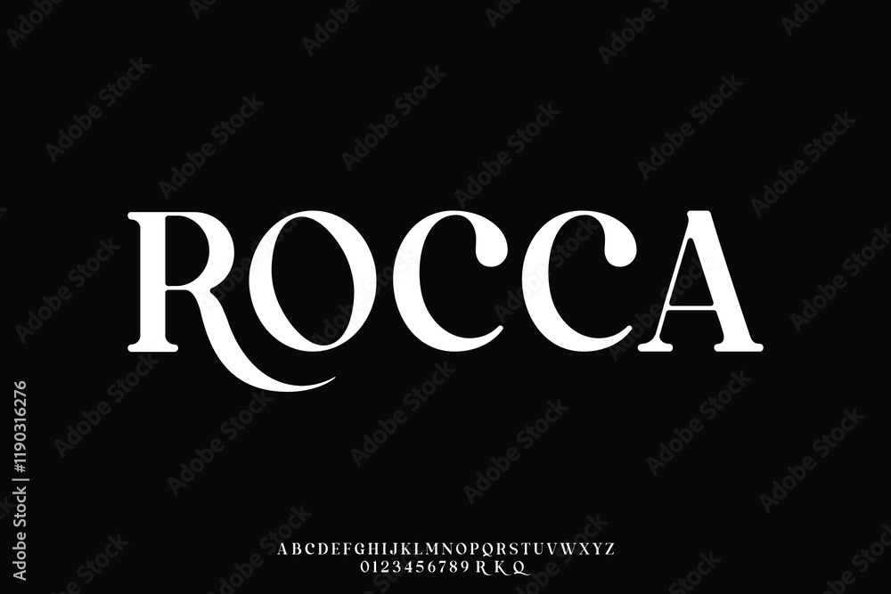 The watermark will not be included on Wall mural.: Elegant rounded serif alphabet display font vector for branding design