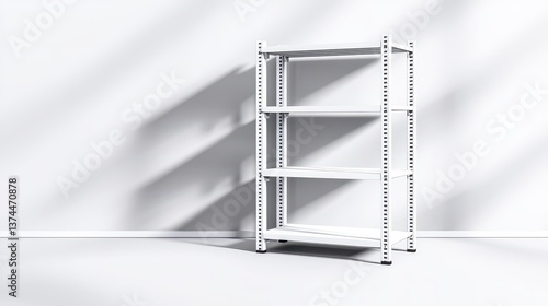 Wall mural : Elegant white shelf with soft shadow casting on clean surface ideal for displaying decorative items