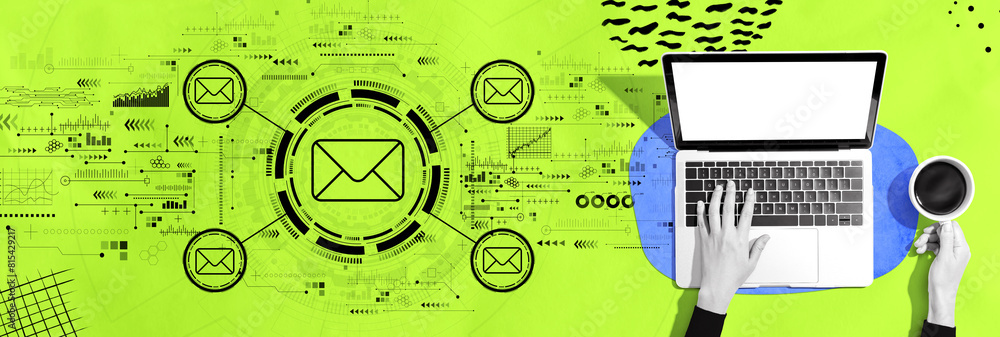 Wall mural email concept with person using a laptop computer - Wall murals Wall mural email concept with person using a laptop computer - Wall murals