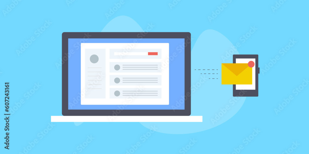 Wall mural email software interface dashboard on laptop screen, sending electronic mail to smartphone. business
