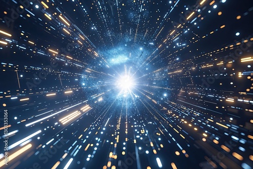 The watermark will not be included on Wall mural.: Emerging deep space technology particle mesh against abstract background