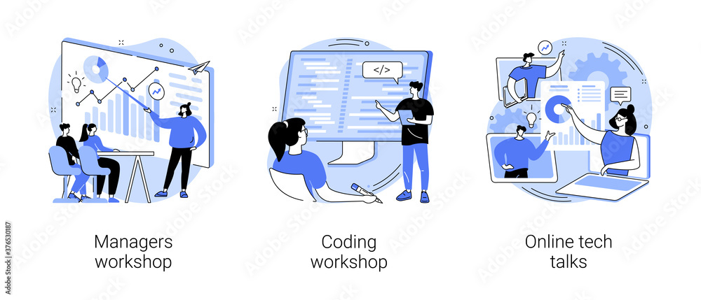 The watermark will not be included on Wall mural.: Employee skills training abstract concept vector illustration set - managers and coding workshops, on