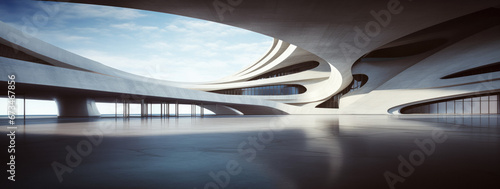 Wall mural empty abstract architecture building in minimal concrete design with open space floor courtyard whit