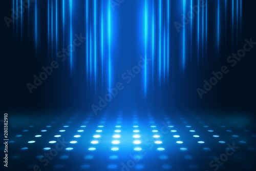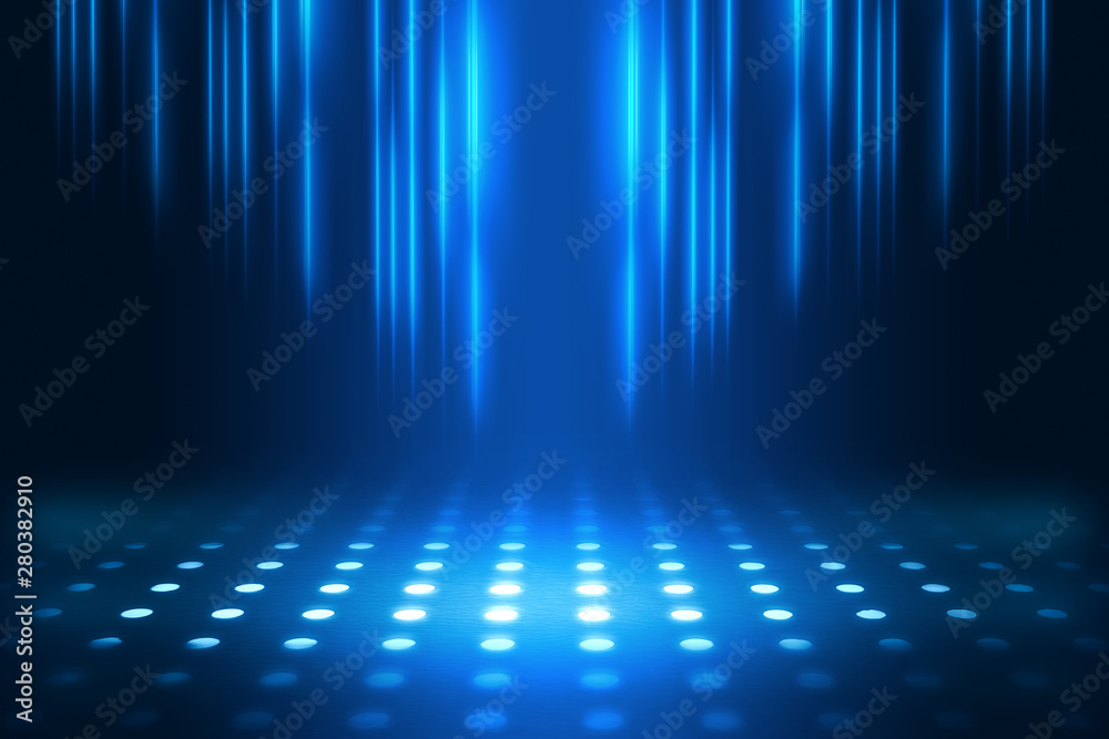 Empty background scene - dark street reflection on wet asphalt - rays of neon light in the dark, neon Wall mural
