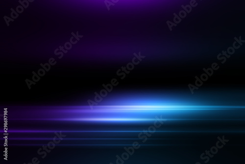 Empty background scene - dark street reflection on wet asphalt - rays of neon light in the dark, neon Wall mural