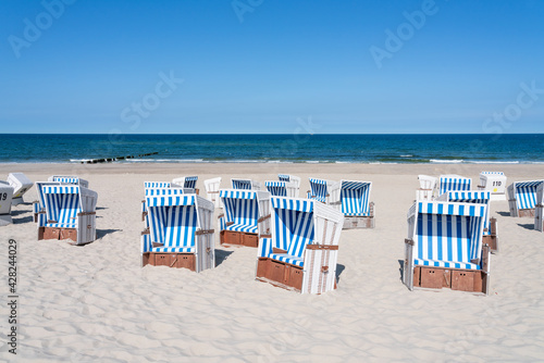 The watermark will not be included on Wall mural.: Empty beach chairs at the north sea coast
