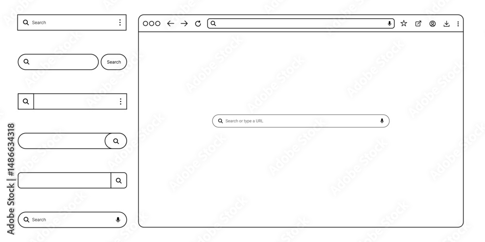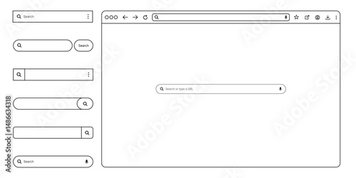Wall mural : Empty browser mockup outline with search bar to showcase websites, featuring an empty internet page