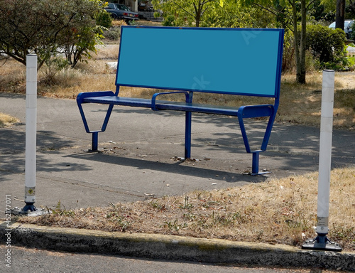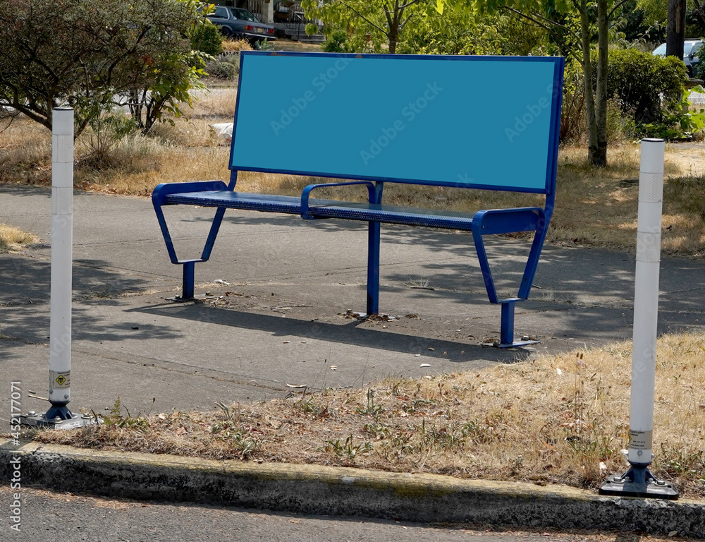Wall mural empty curbside bus bench with copy space. - Wall murals Wall mural empty curbside bus bench with copy space. - Wall murals
