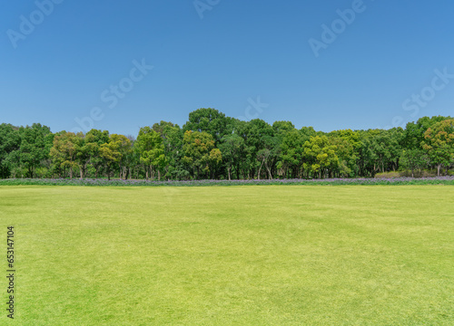 The watermark will not be included on Wall mural.: Empty grassland and clear sky background in the park