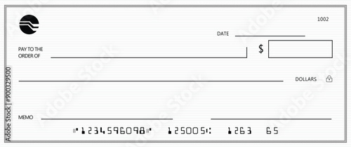 Wall mural empty money cheque. bank check. check book template with pattern and blank fields. currency payment