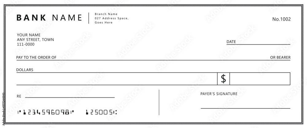 Wall mural empty money cheque. bank check. check book template with pattern and blank fields. currency payment