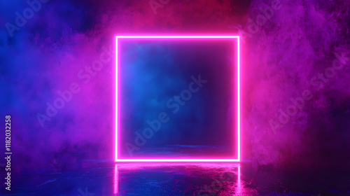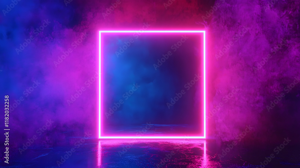Wall mural empty neon rectangle frame with shining effect on dark background with copy space. black friday, cyb