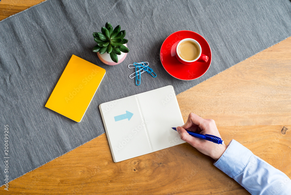 Wall mural : Empty notebook with copy space and hand as flat lay and template