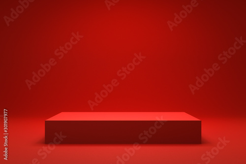 The watermark will not be included on Wall mural.: Empty red background and stand display or shelf with studio for showing or design christmas concept -