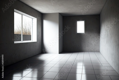 The watermark will not be included on Wall mural.: Empty room with concrete walls and floor tiles, created with generative ai