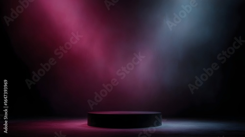 Wall mural empty round stand with intense spotlight in a vibrant gradient background long title minimalist and
