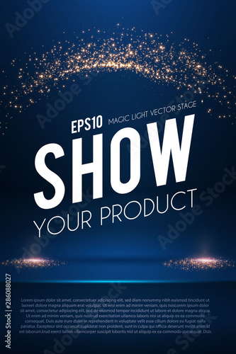 Wall mural empty scene with magic spotlights. ad and promotion design template.