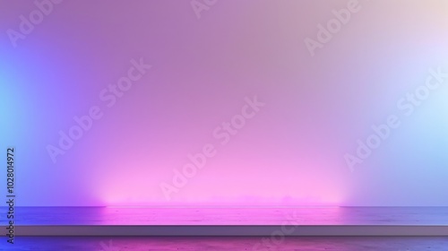 Wall mural : Empty shelf is bathed in the colorful glow of a synthwave gradient wallpaper