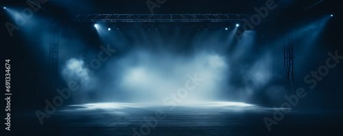 Wall mural empty stage with spotlights and smoke banner background with copy space