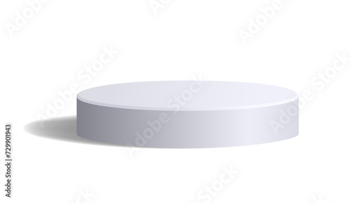 Wall mural empty white round shaped podium isolated on white. realistic monochrome low studio platform with lig