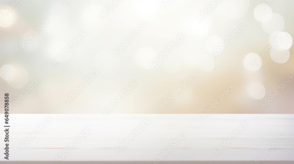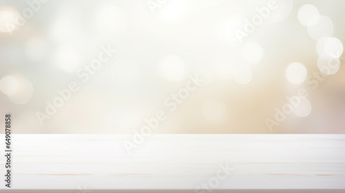 Wall mural empty white table blurred on soft light gently bokeh background