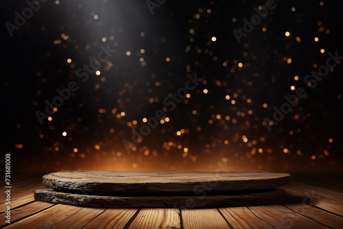 The watermark will not be included on Wall mural.: Empty wooden table with sparkling bokeh lights background
