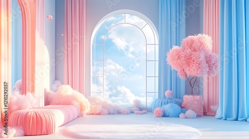 The watermark will not be included on Wall mural.: Enchanting pastel gradients with soft fluffy textures create a serene whimsical atmosphere full of c