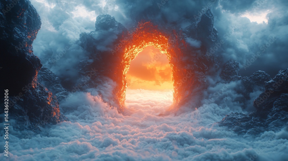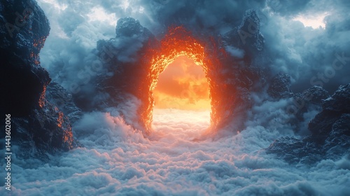 The watermark will not be included on Wall mural.: Enchanting tunnel formed amidst fluffy clouds creating a surreal dreamlike gateway to an ethereal co