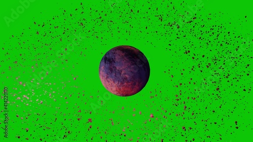 Wall mural : Endless loop of animation of flying planet with circle of asteroide isolated on green backgroung