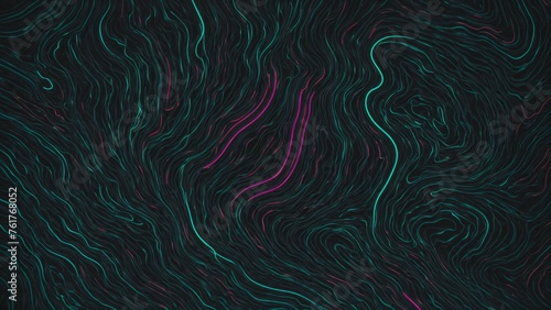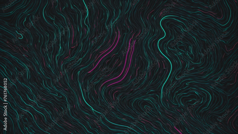 Wall mural energetic neon patterns show abstract topographic features on a dark backdrop - Wall murals Wall mural energetic neon patterns show abstract topographic features on a dark backdrop - Wall murals