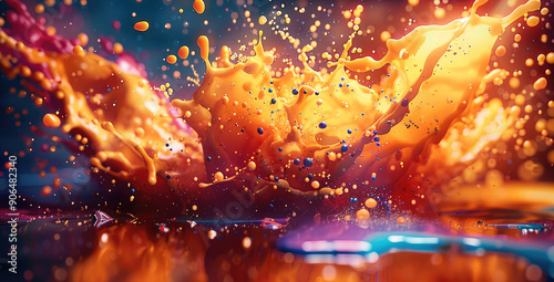 Wall mural energetic paint explosion with vibrant splashes and drops, forming a dynamic abstract background in