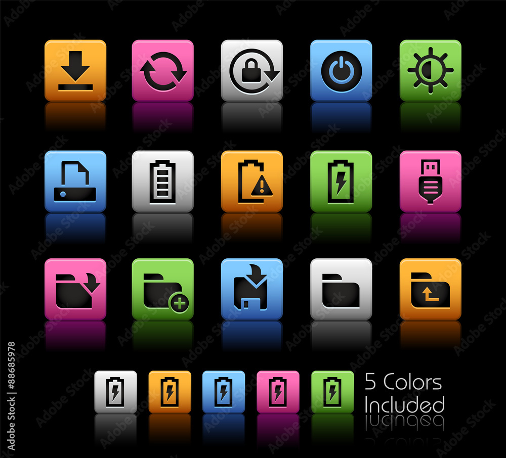 Wall mural energy and storage icons // colorbox series -- the vector file includes 5 color versions for each ic - Wall murals Wall mural energy and storage icons // colorbox series -- the vector file includes 5 color versions for each ic - Wall murals