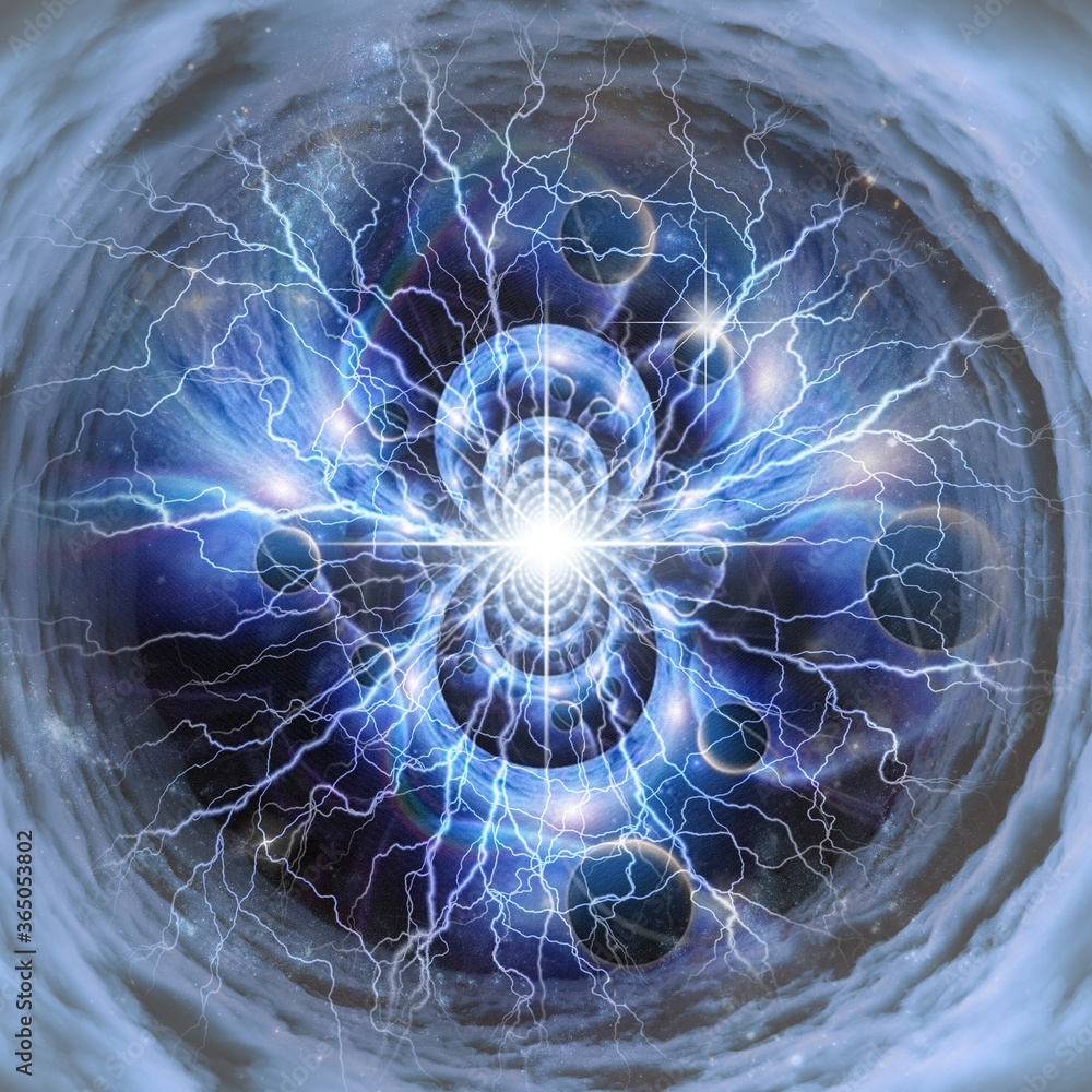 Wall mural energy burst in tunnel of clouds. 3d rendering - Wall murals Wall mural energy burst in tunnel of clouds. 3d rendering - Wall murals