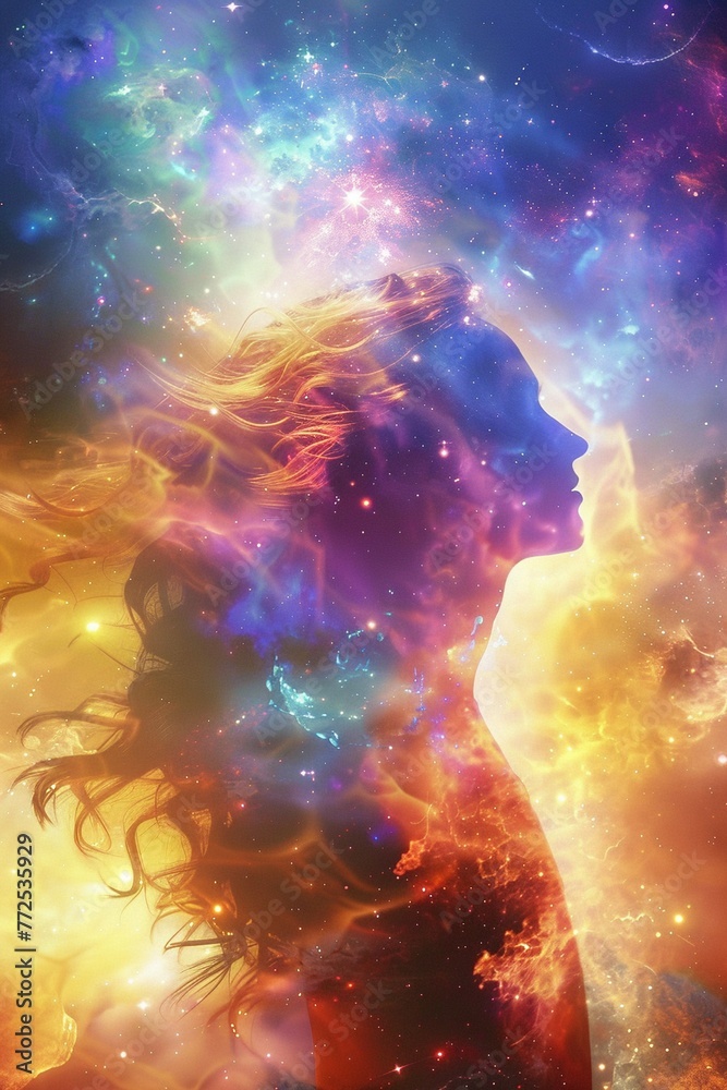 The watermark will not be included on Wall mural.: Energy for abundance: crystals arranged in a circle on a woven mat, symbolizing the harnessing of po