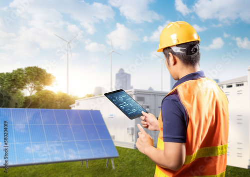 Wall mural : Engineer control energy storage system or battery container unit