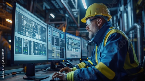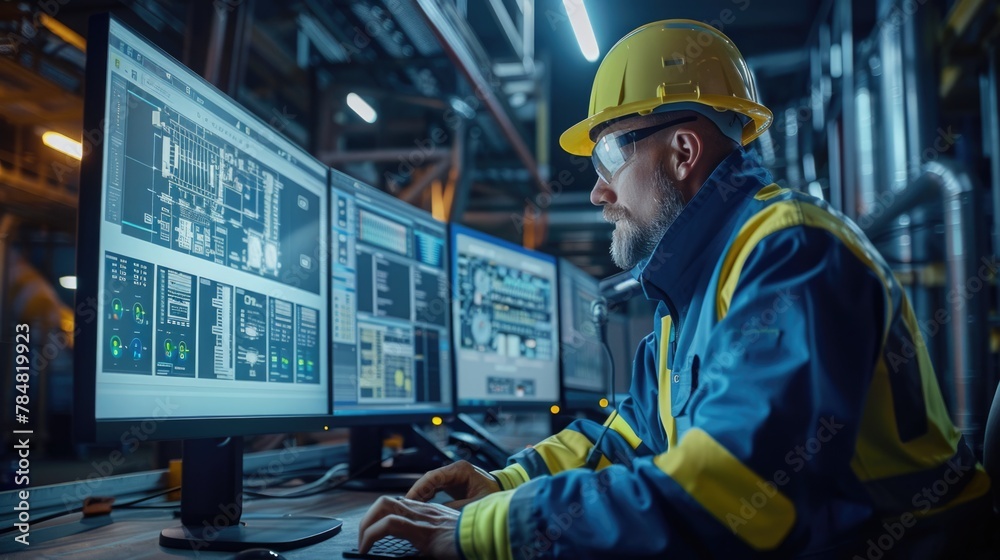 Wall mural : Engineer controller working with data base from scada system computer screen -